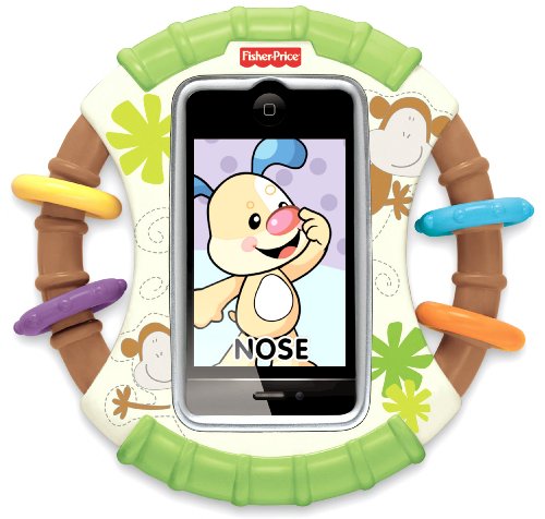 Share the technology you enjoy every day, with baby—with the safe and sturdy monkey-themed case. Your device locks securely inside to protect against baby’s messy dribbles, drool and teething. If you’d like to keep the home button blocked from unwanted call making, just put your device in one way (clear protective strip on this side), or flip it in the other direction to keep the home button accessible. Busy beads and a mirror add baby-appropriate play. Download Laugh & Learn apps from the App Store for plenty of learning fun.
